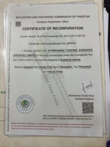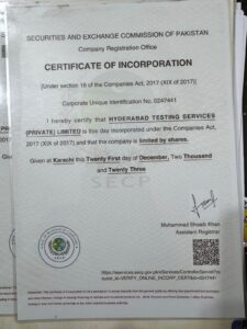 Hyderabad Testing Services Private Limited Established In 2023 Register at SECP & FBR